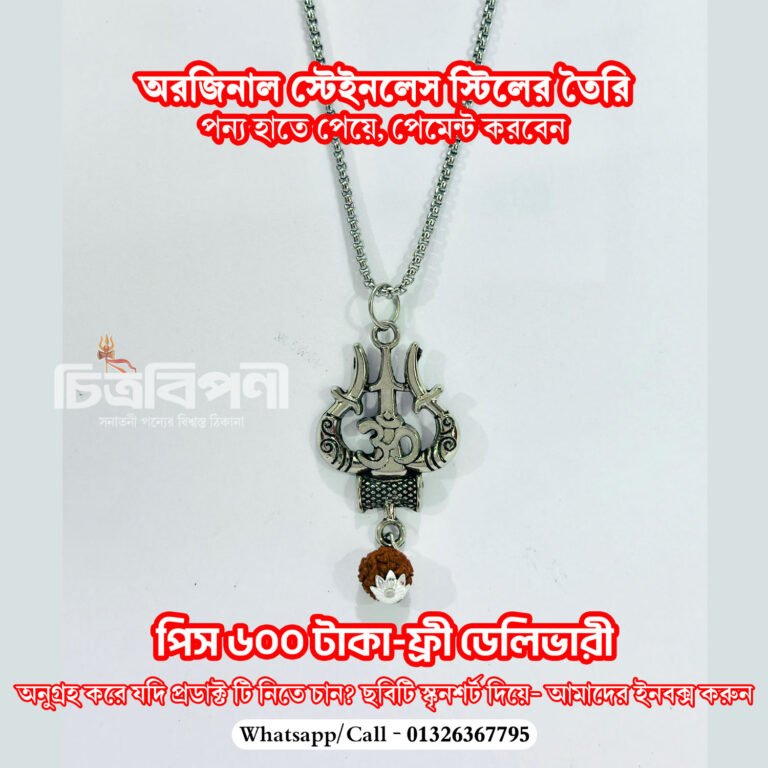 আর্টিফিশিয়াল রুদ্রাক্ষ মালা ত্রিশূল লকেটসহ-স্টেইনলেস স্টিল