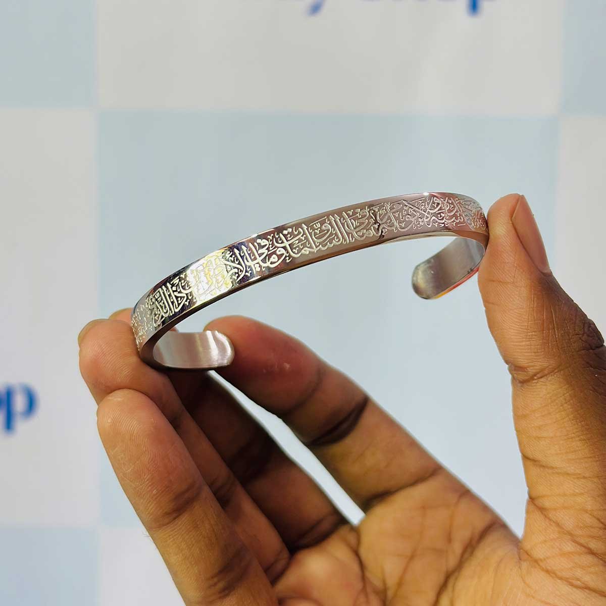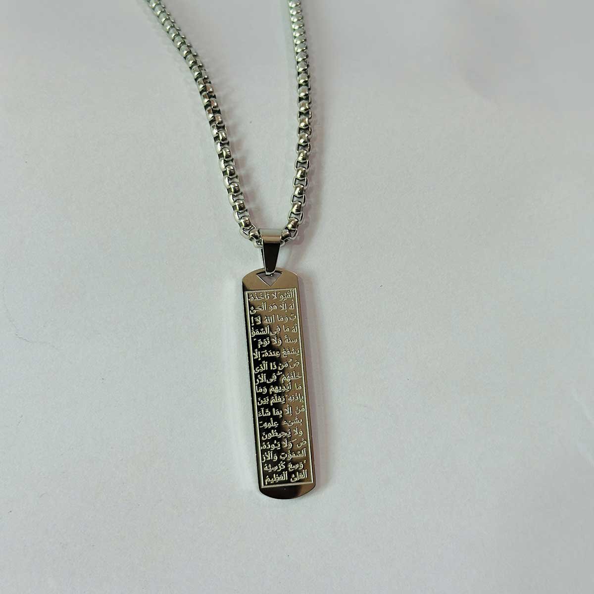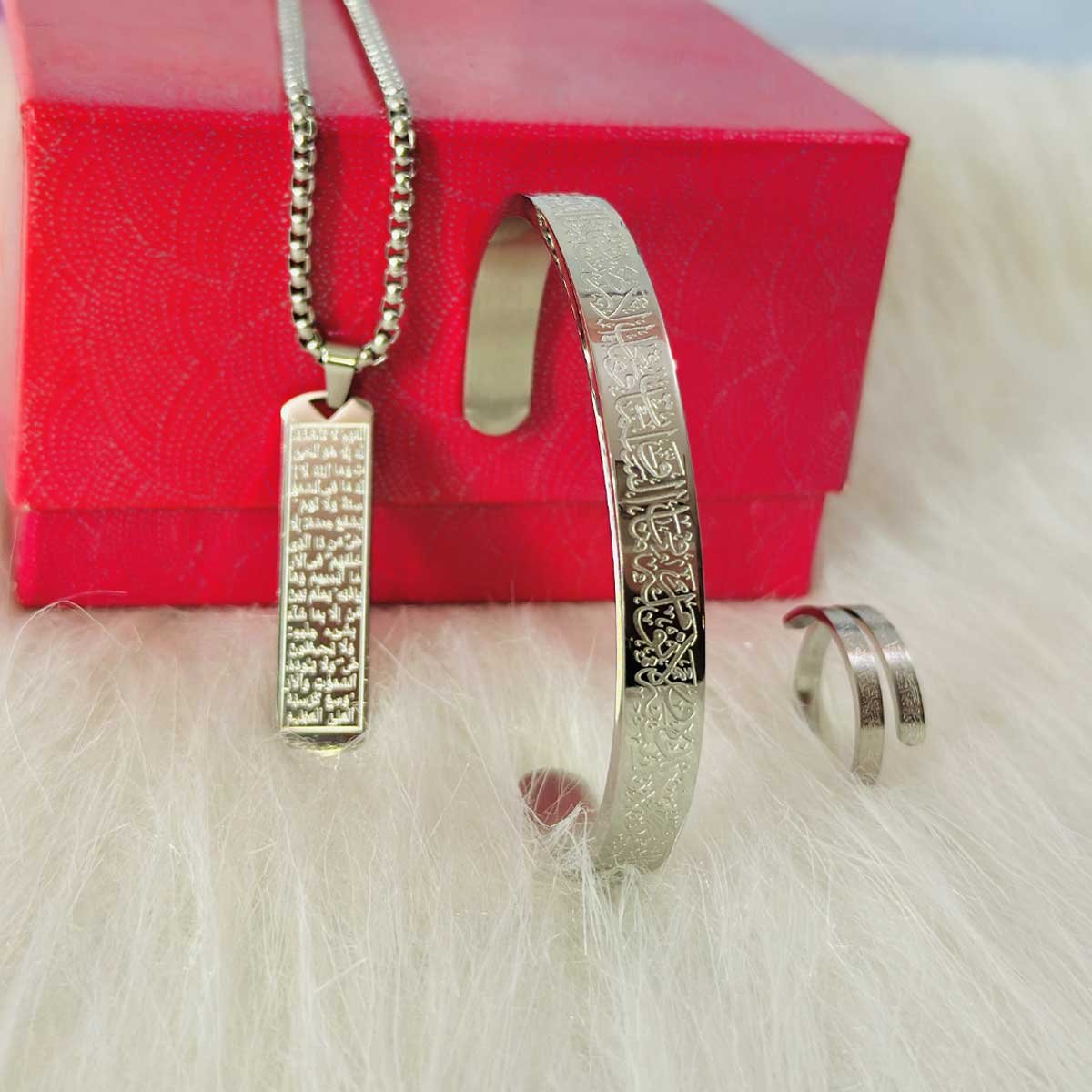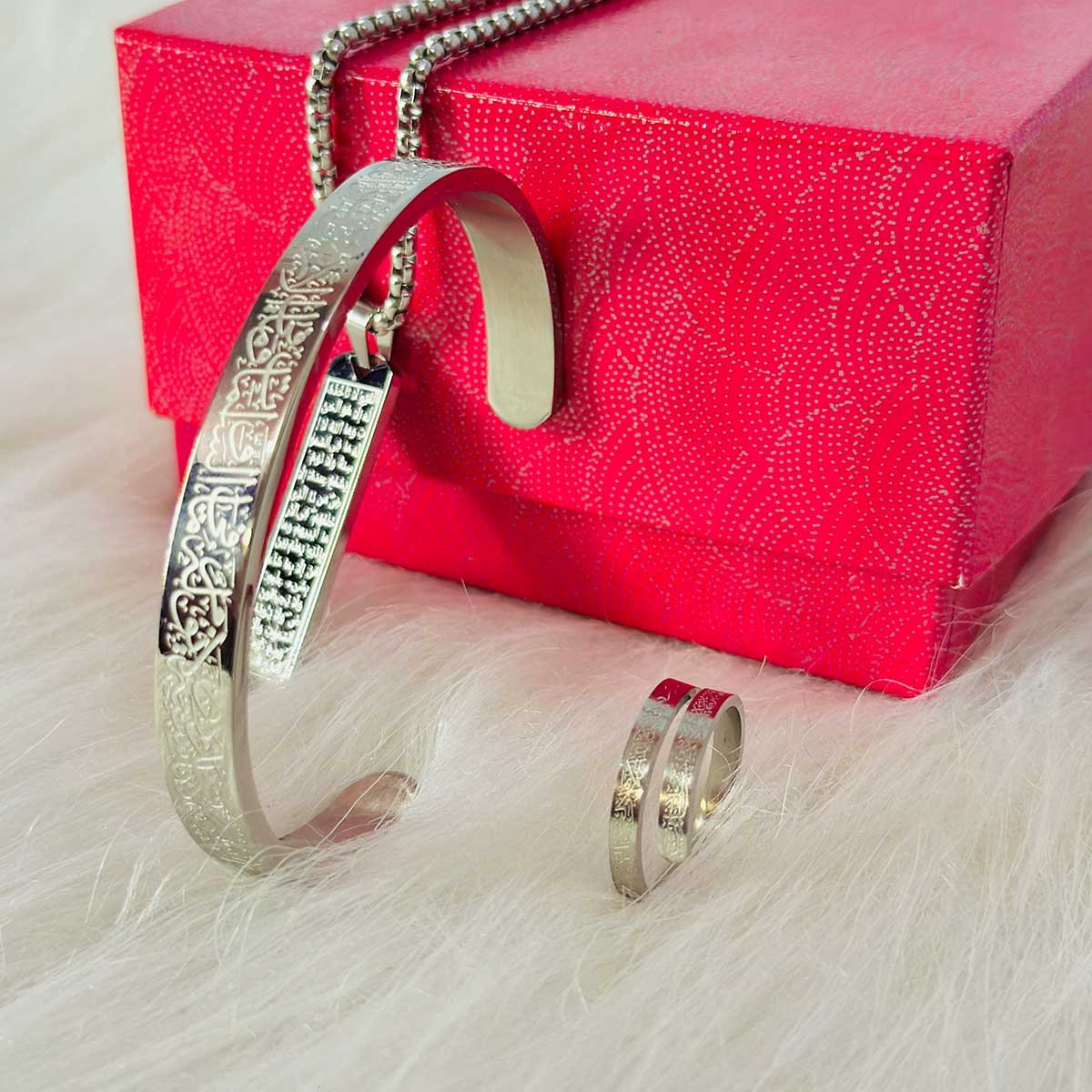 আয়াতুল কুরসি খোদাই করা প্রিমিয়াম কম্বো সেট – চেইন লকেট, আংটি ও ব্রেসলেট | Silver