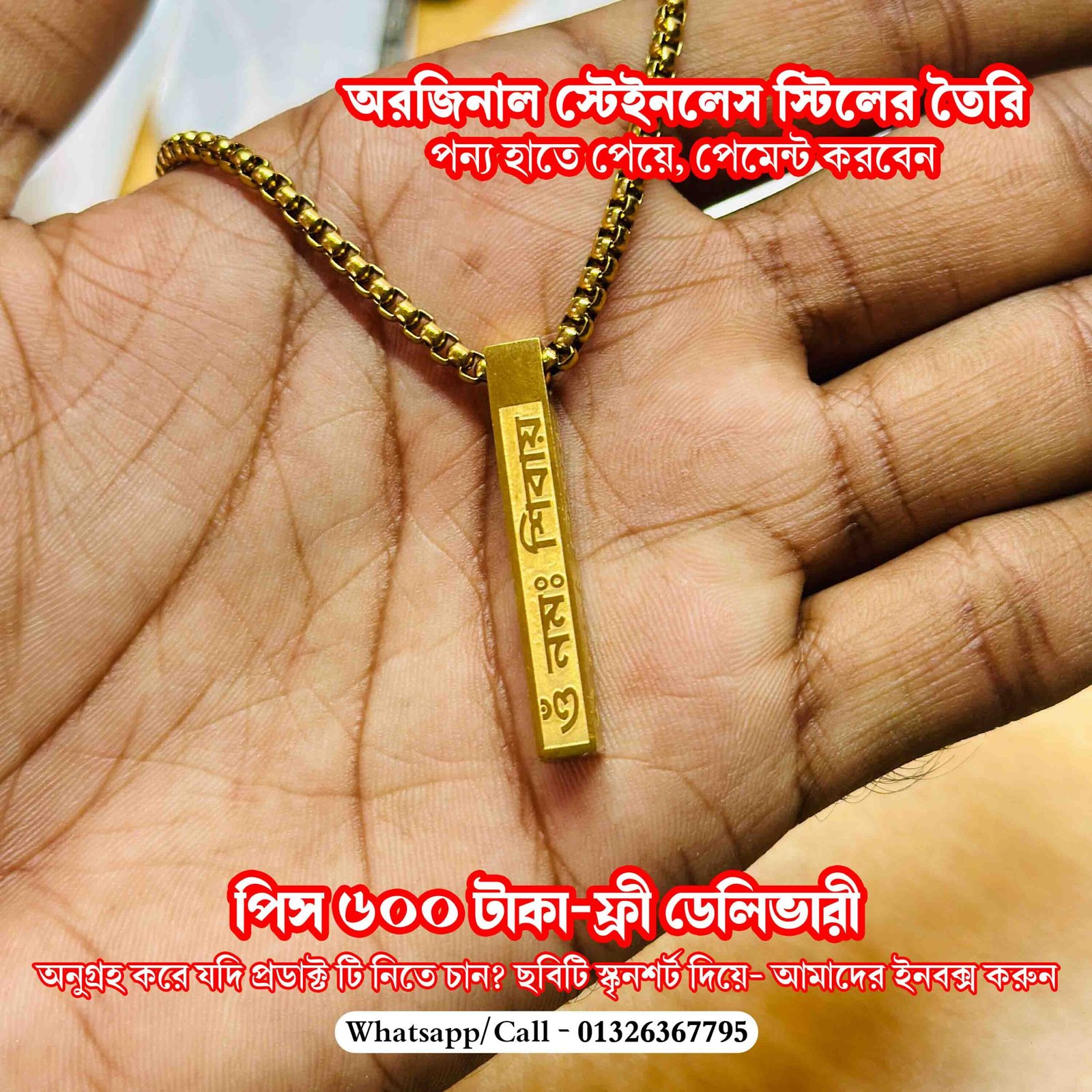 এই লকেটটি তৈরি করা হয়েছে অরিজিনাল স্টেইনলেস স্টিল দিয়ে, যার উপর নিখুঁতভাবে“ওম নমঃ শিবায়”খোদাই করা আছে।
